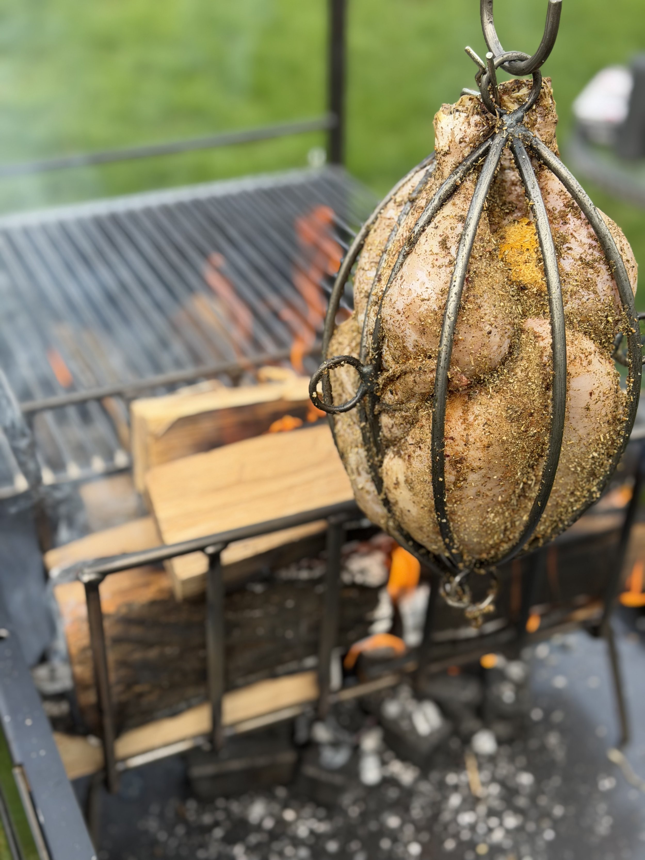 Whole Camembert, grapes, Hot Honey, melted over fire, finished with crispy onions and grilled